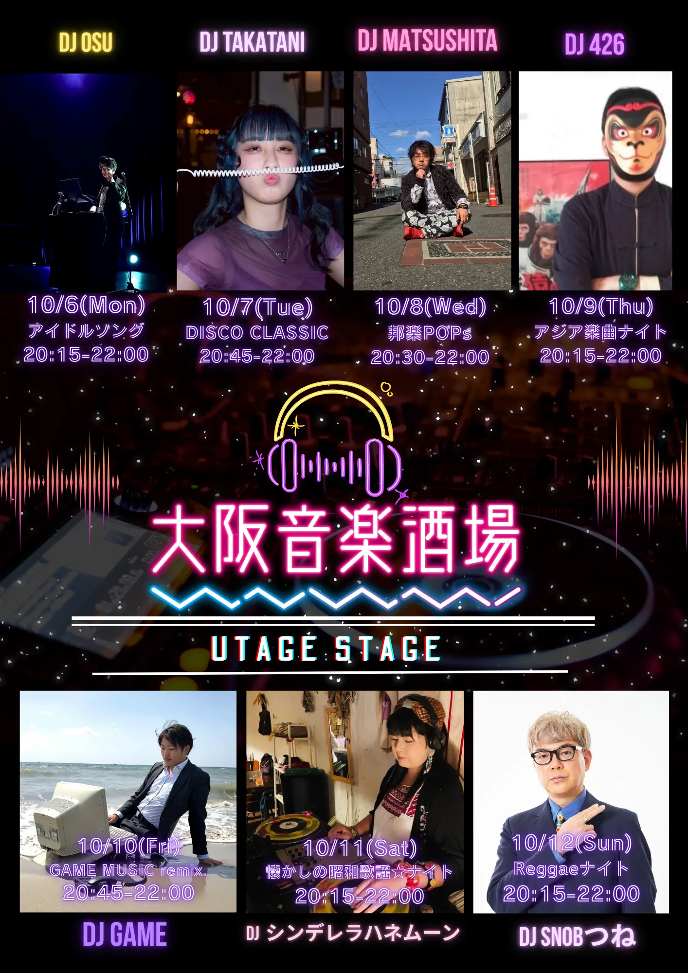 2025年10月03日(金)大阪音楽酒場♪10月12日(日)まででのスケジュール