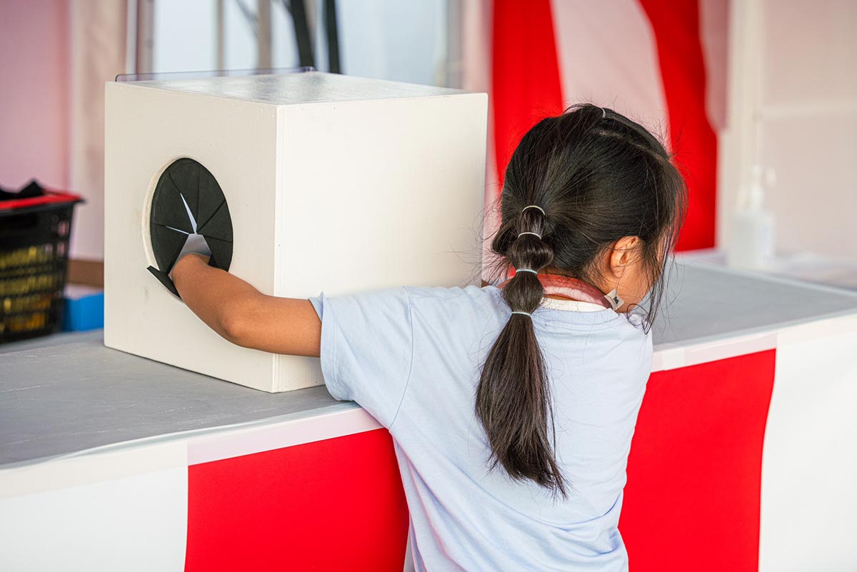 制限時間内(30秒)で中身を当てられたら200円食事券またはおもちゃをプレゼント!