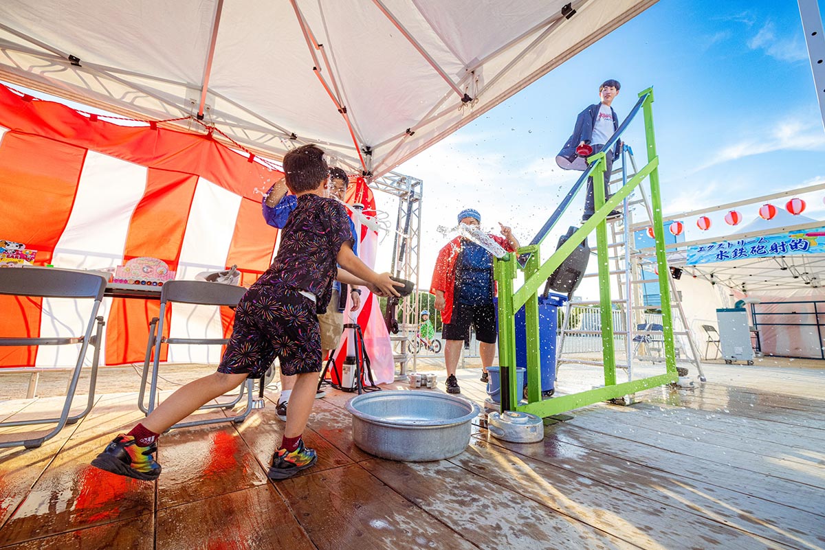 定番の出し物から、「エクストリーム流しそうめんキャッチ」「エクストリーム水鉄砲射的」など